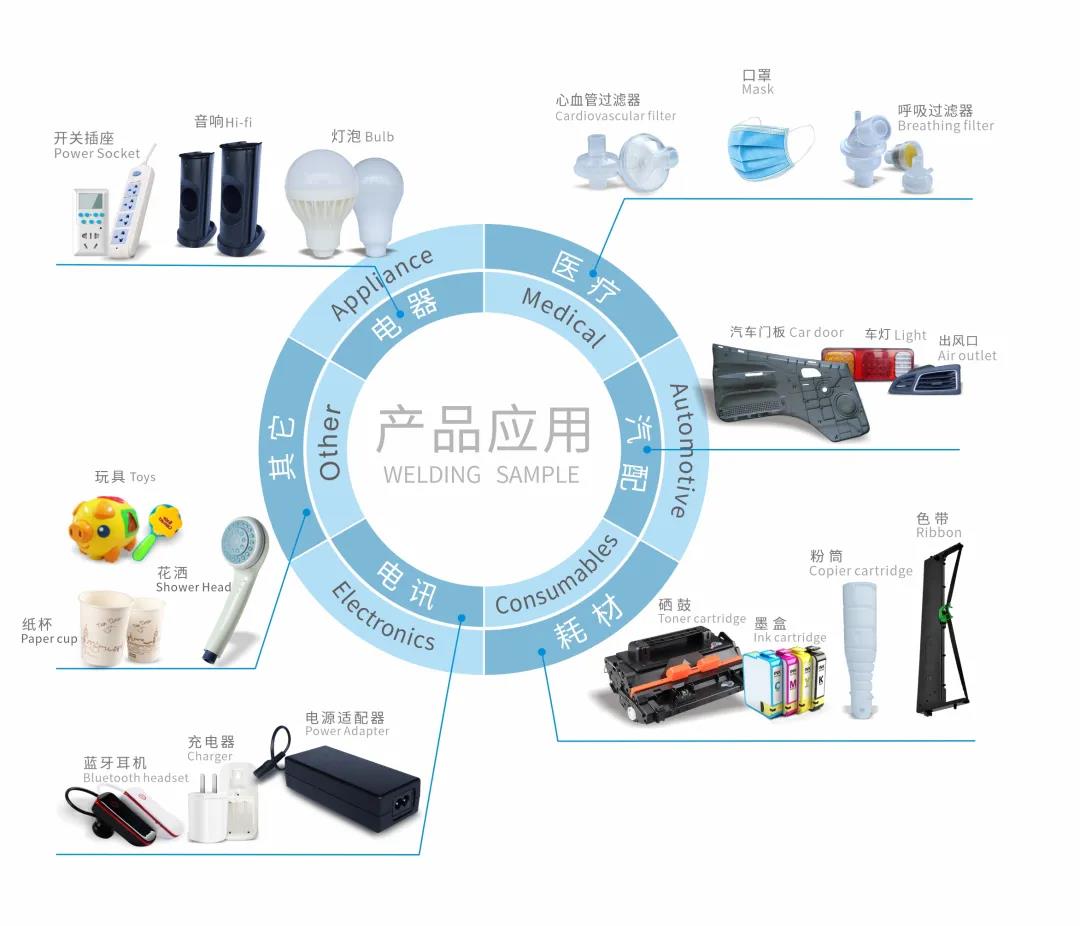 超聲波塑料焊接設備、旋轉摩擦焊接設備、熱板焊接設備、超聲波焊接自動化配套、周邊設備配套系列等。