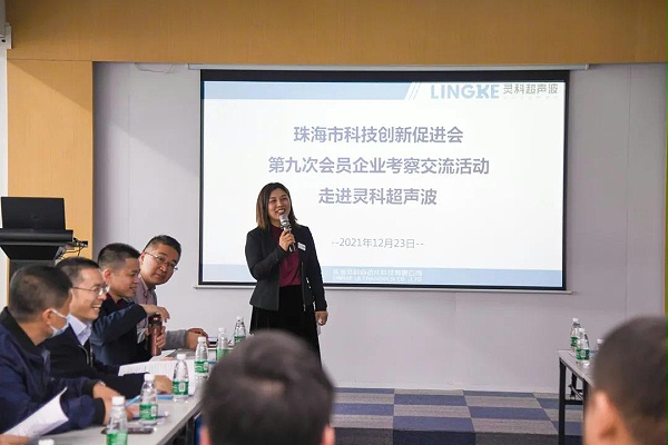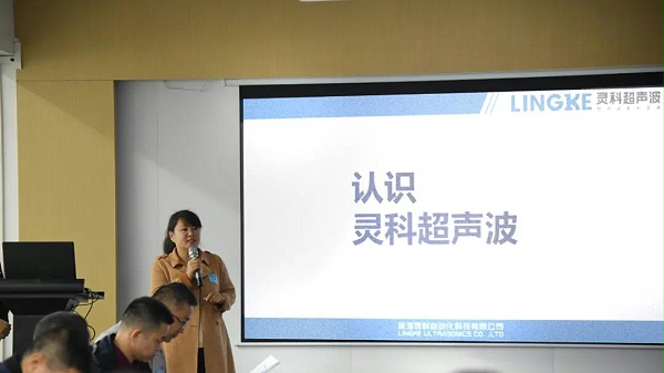 靈科超聲波行政總監(jiān)江靜女士致歡迎詞表示:熱烈歡迎各位嘉賓的到來(lái),十分高興大家蒞臨靈科超聲波考察交流,互相溝通學(xué)習(xí),希望之后能與各企業(yè)發(fā)展相互間的友好合作關(guān)系。