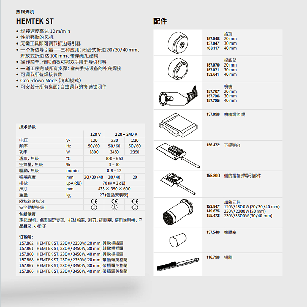 特點(diǎn):焊接速度高達(dá)12 m/min;風(fēng)機(jī)性能強(qiáng)勁,操作簡(jiǎn)單;無需工具即可調(diào)節(jié)折邊導(dǎo)引器;焊接支持閉合式折邊、開放式折邊、帶穿繩孔結(jié)構(gòu);可調(diào)節(jié)所有焊接參數(shù),自由調(diào)節(jié)快速鎖閉件;