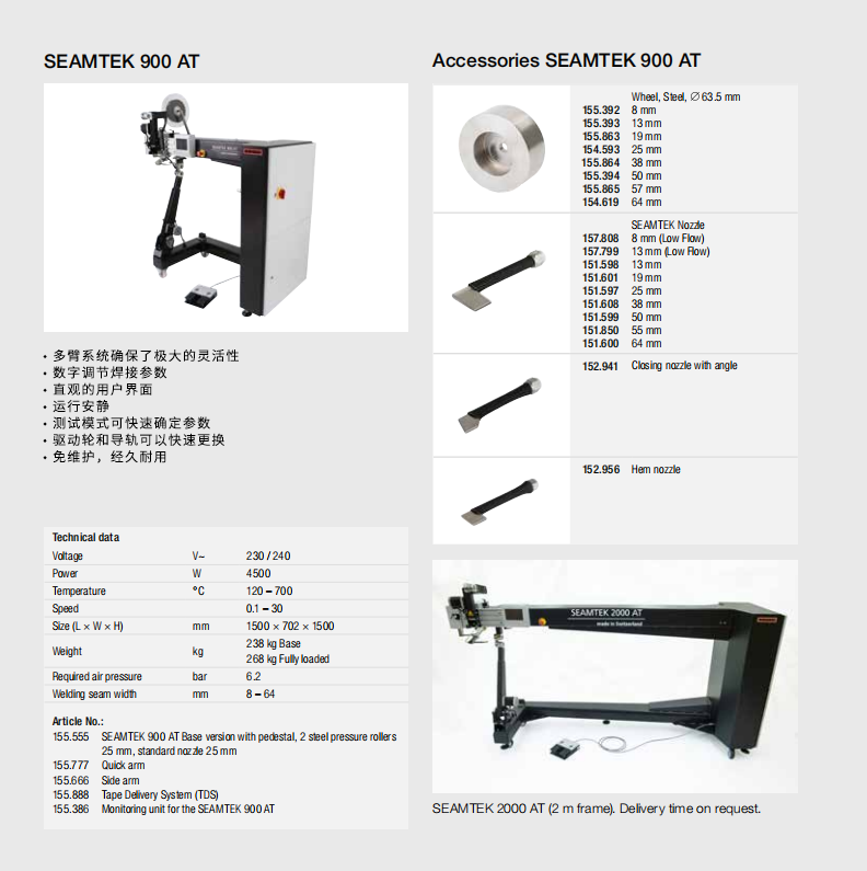 特點:多臂系統,確保工作靈活性;觸摸屏操作,控制焊接參數;界面直觀,支持快速查找參數;運行安靜,支持快速更換驅動輪和導向裝置;
